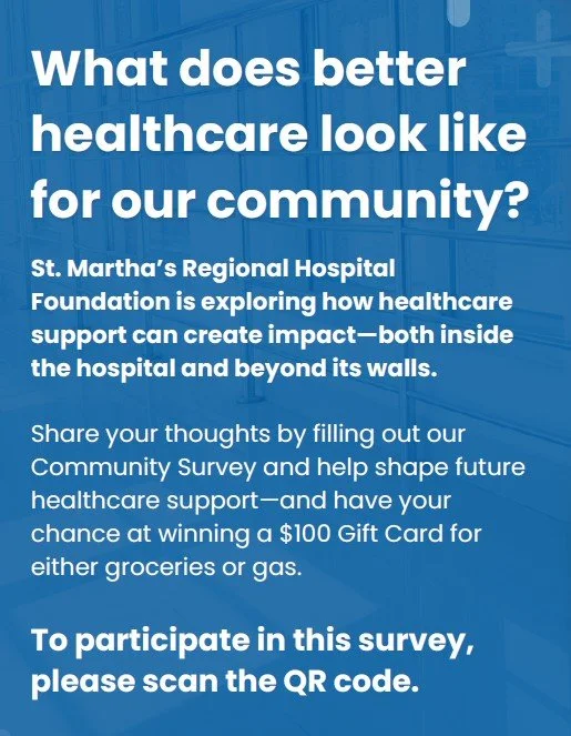 At the St. Martha’s Regional Hospital Foundation, we support better healthcare for the quad-counties by funding education, research and the purchase of enhanced medical equipment for St. Martha’s Regional Hospital.